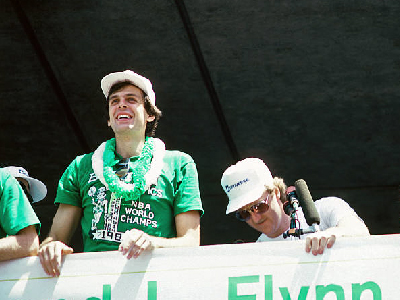 Boston Celtics 队夺冠穿着STARTER T-恤庆祝胜利